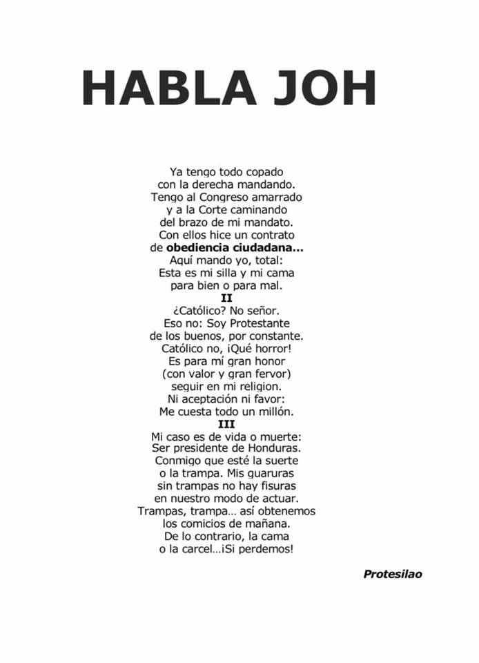 Lo conocí en el transcurso de 22 años y estuve en casi todas sus lecturas, asimilando su dolor por Honduras. Hace unos 9 días, Martita, su hija, de quien fui compañero laboral en el Ministerio de Cultura, me escribió para decirme que el poeta había escrito un texto contra la dictadura de Juan Orlando Hernández (JOH), pero que iba firmado con el seudónimo que acostumbraba a usar cuando en los 70 y ochentas las cosas se ponían de cuidado. Protesilao se revolvía de nuevo contra el asco sin fin:
