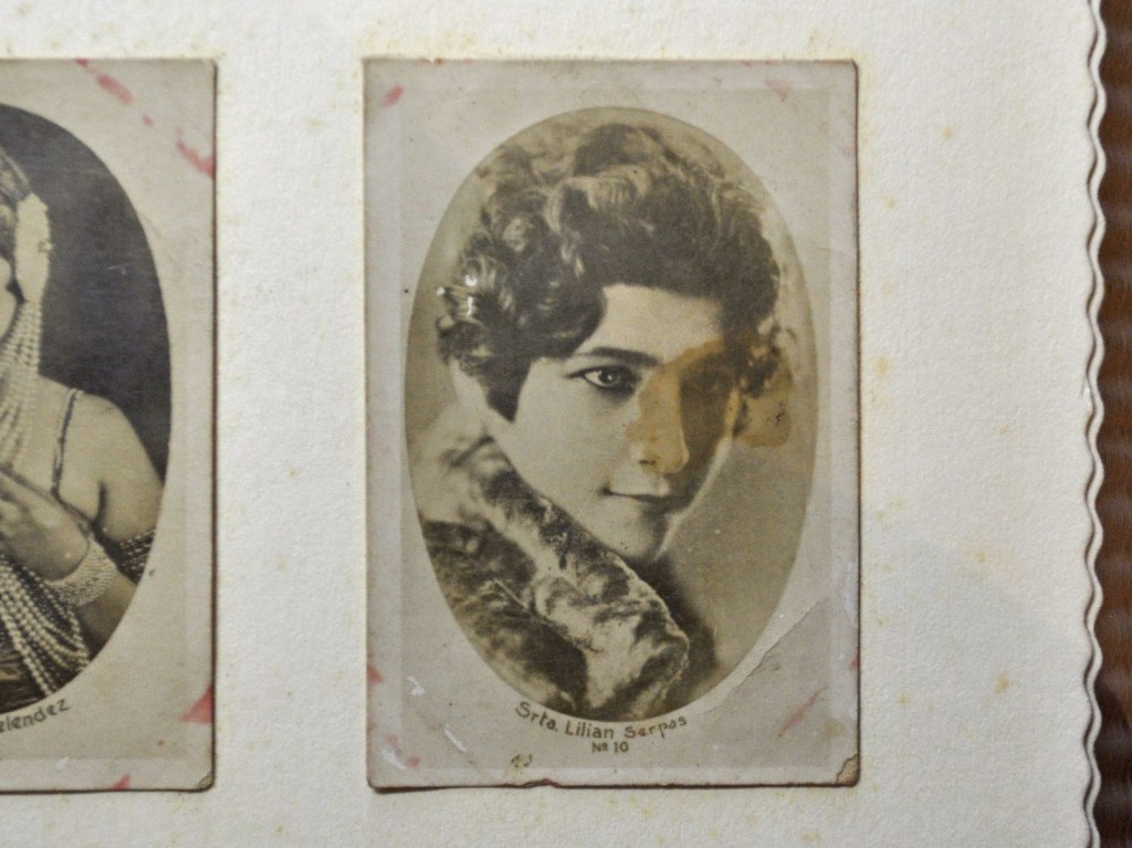 Fotografía de Jorge Ávalos: Lilian Serpas, adolescente, en una colección de fotos tamaño cédula de “Señoritas de Sociedad” que venían como regalos de productos de tabaco en San Salvador, década de 1920.